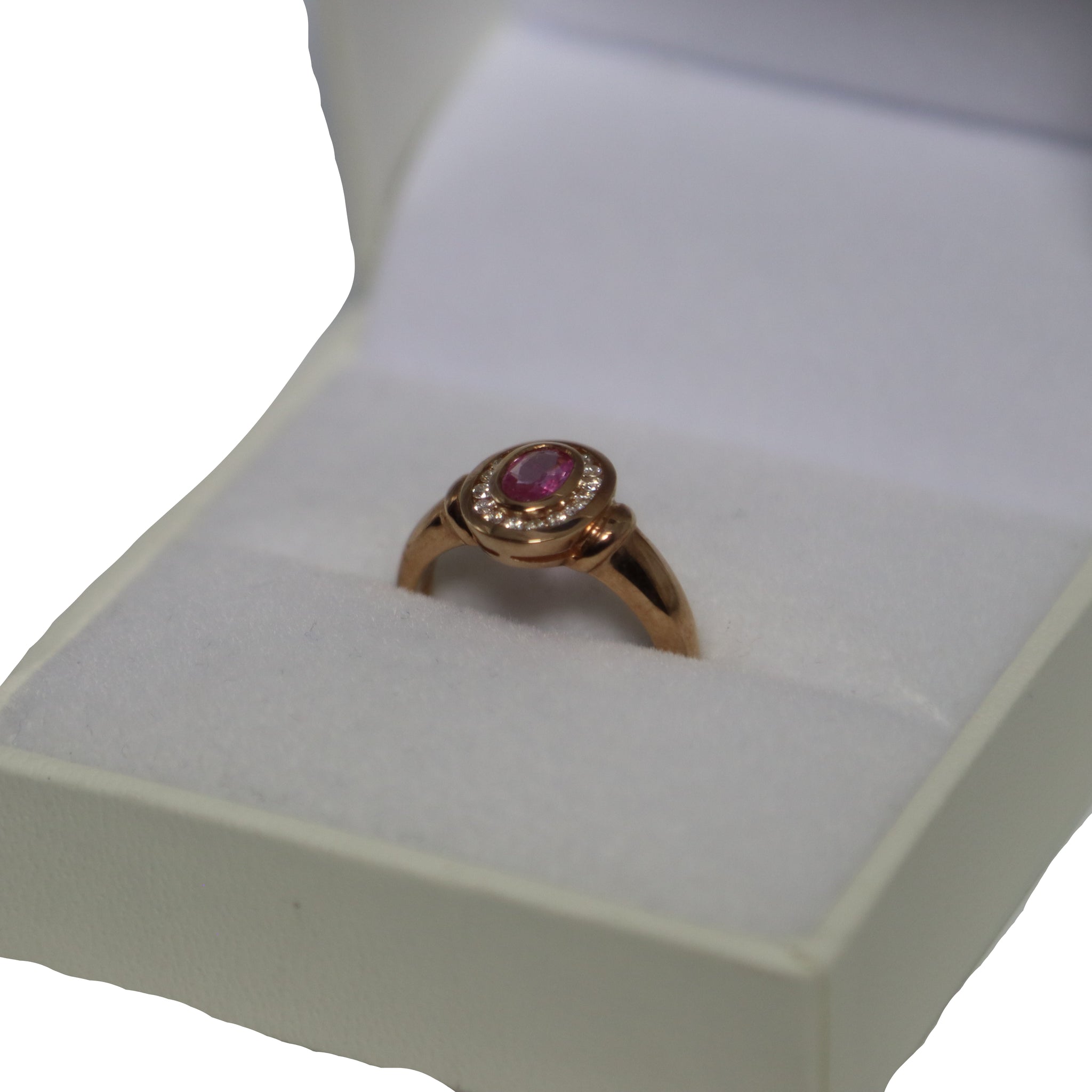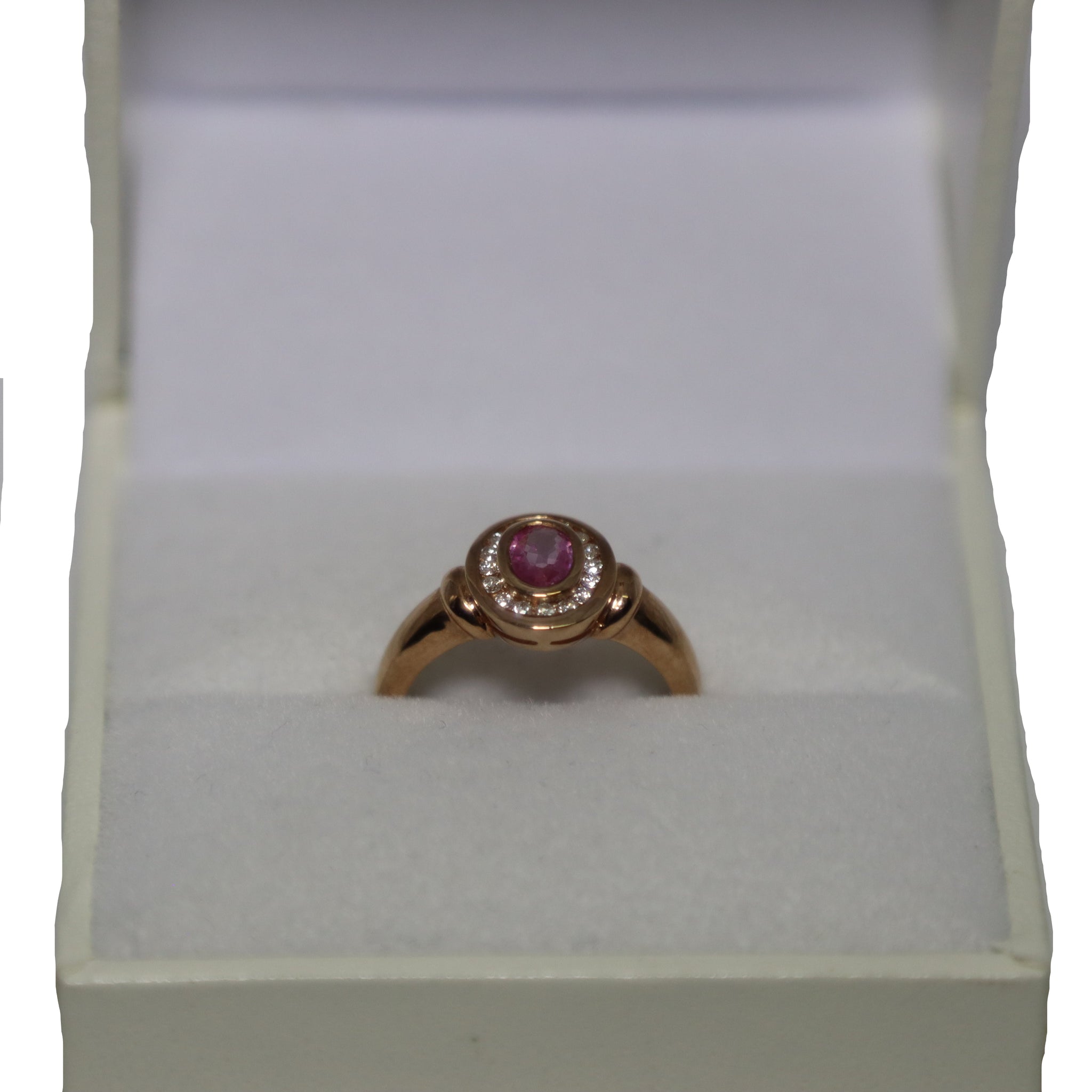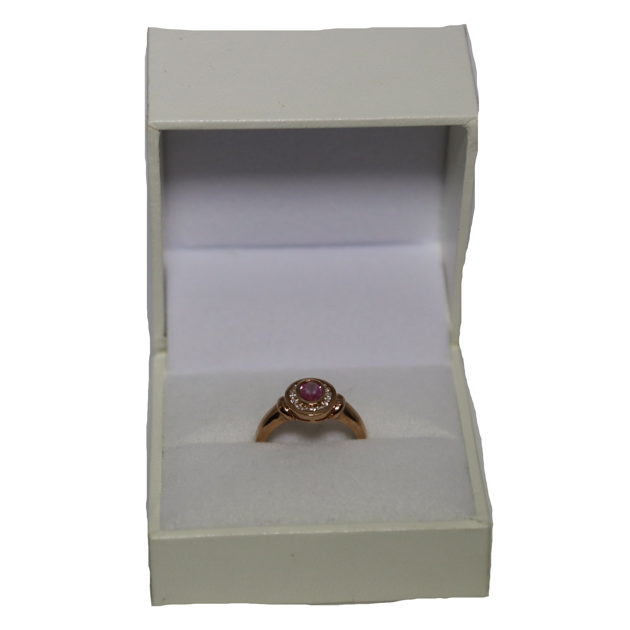 9ct Rose Gold Oval Rub Set Pink Sapphire and Diamond Cluster Ring